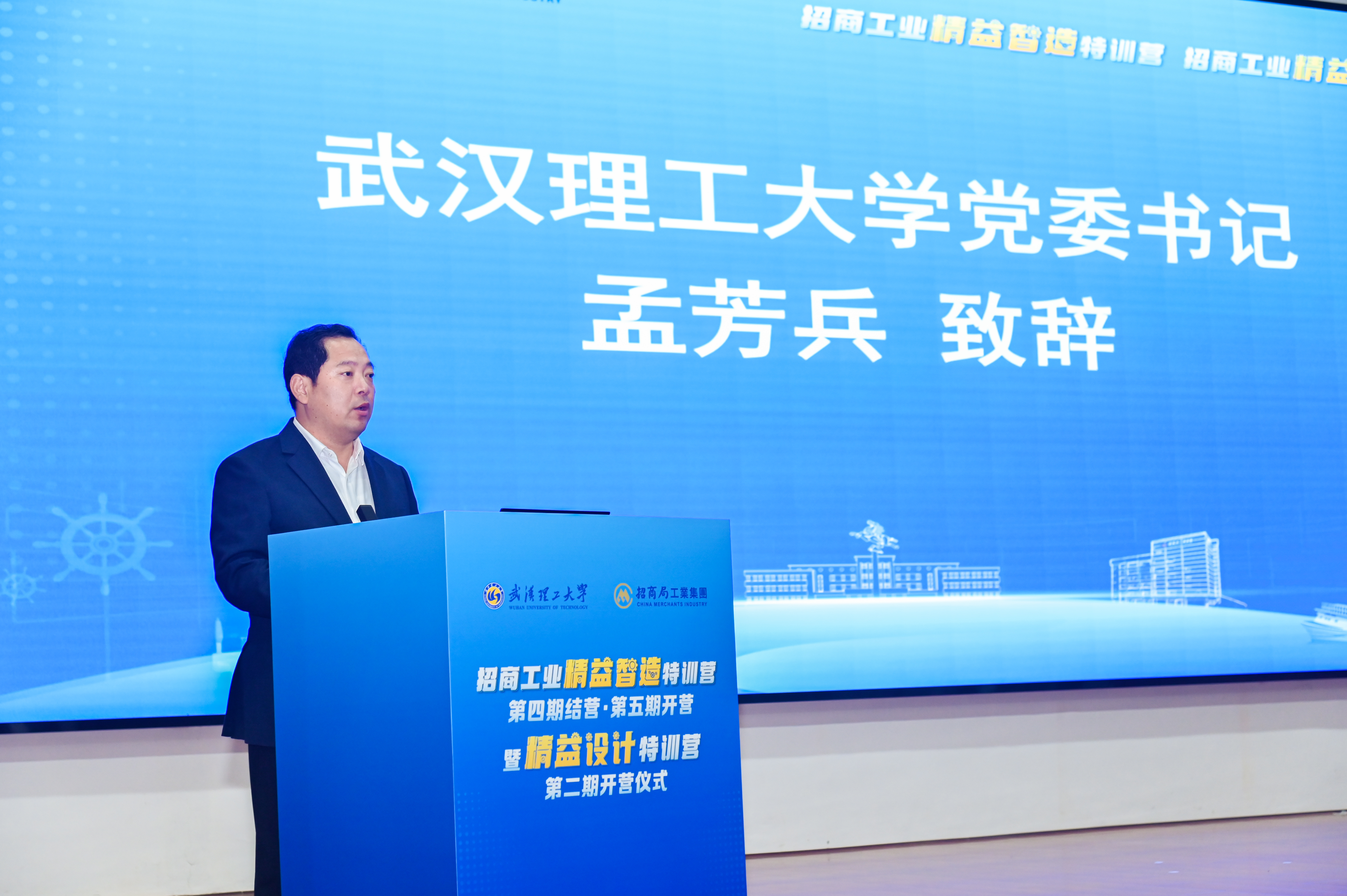 孟芳兵代表学校向与会嘉宾与新学员表示热烈欢迎,向圆满完成培训的全体学员表示衷心祝贺。他强调,学校将以本次特训营为新的起点,建立健全校企双方常态化沟通合作机制,在校企党建联建、人才联合培养、平台联合共建等方面持续深化合作,推进教育科技人才一体化改革取得新突破,在以中国式现代化全面推进强国建设、民族复兴中书写武汉理工与招商工业担当有为的崭新篇章。