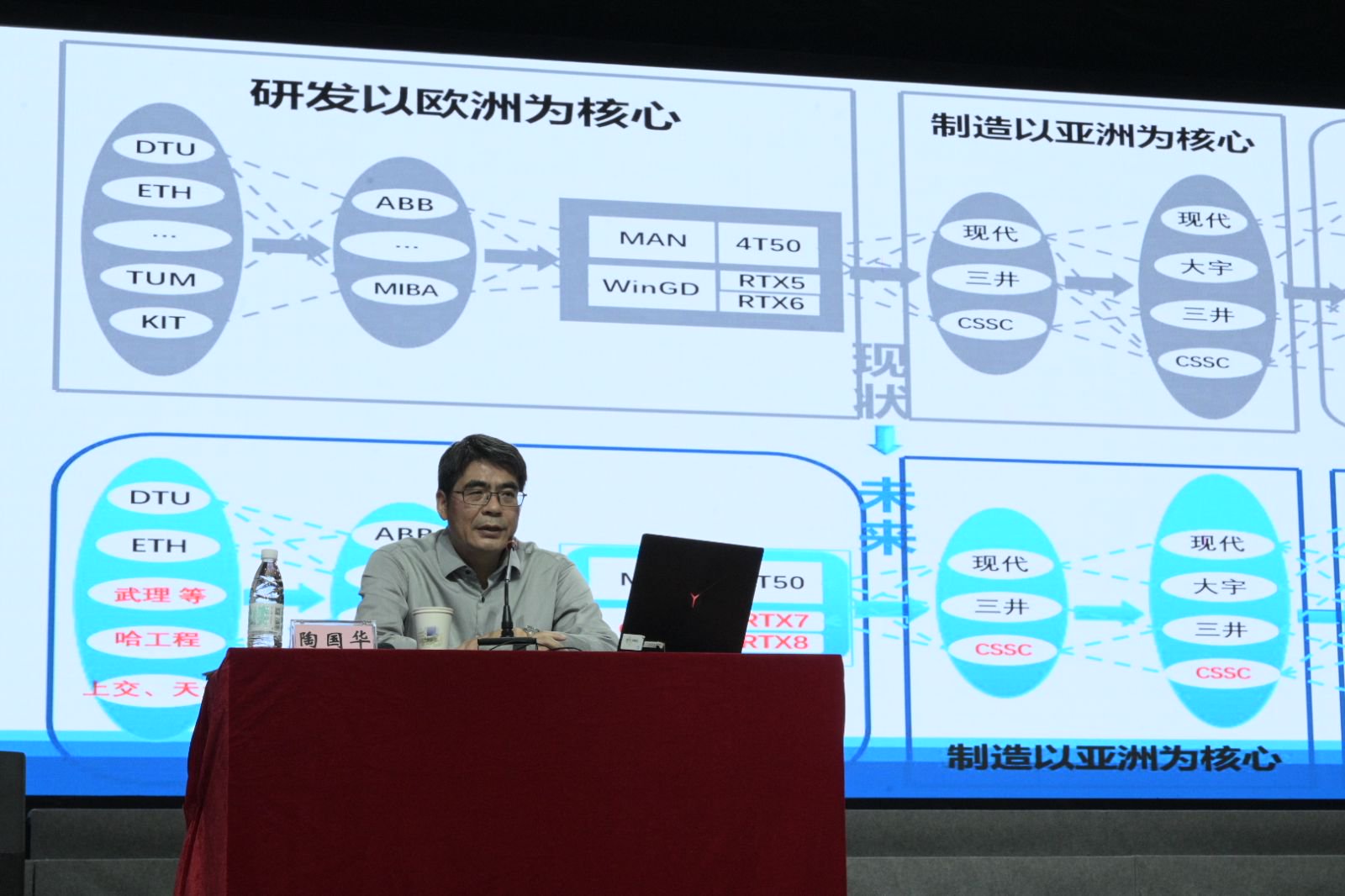 10月25日,陶国华校友以“对船用低速机排放的认识和船舶绿色减碳转型背景下其未来技术和产品发展的思考”为题,详细介绍了船用低速机的进展与现状,深度分析了船用低速机低碳零碳技术及产品的发展趋势,并明确提出了船舶动力行业低成本绿色发展的路径。陶国华强调,“船舶动力是船舶工业的核心所在,其进步对于推动船舶工业的绿色、高质量发展至关重要。”