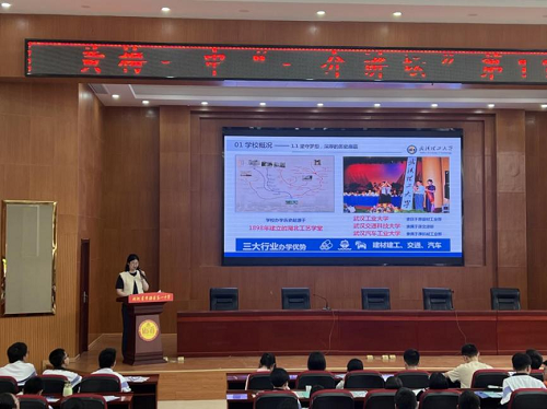 李春梅回顾了我校近年来到黄梅一中授牌、宣讲、交流情况,并对黄梅一中长期以来给予我校的支持表示感谢。她以“四个最”为切入点,就学校的师资力量、优势专业以及人才培养成效等方面做了详细宣讲。她讲到,希望通过带领中学生走进实验室、走近“大国重器”,让学生能够感受理工,了解理工,报考理工。