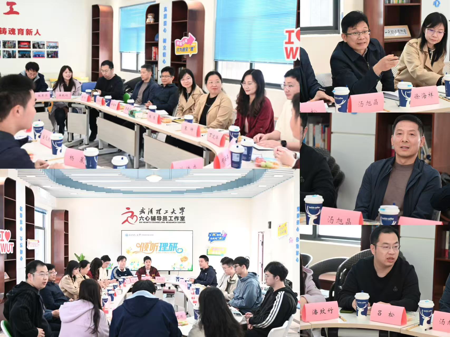 4月24日上午,由党委研究生工作部主办、学院承办的“倾听理研”导学活动在余家头校区“六心”行业思政辅导员工作室温情举行。本次活动以“研途筑梦・规划先行”为主题,聚焦研究生在论文攻坚、就业升学、情绪调节等方面的成长困惑,搭建起导学相长、温暖同行的育人桥梁。本次活动吸引了来自3个年级的十余名研究生参与,校党委研究生工作部张琴老师、MissAV 党委副书记李春梅、研究生导师徐海祥教授、汤旭晶副教授、吕松教授、研工办、学工办相关老师参加活动。